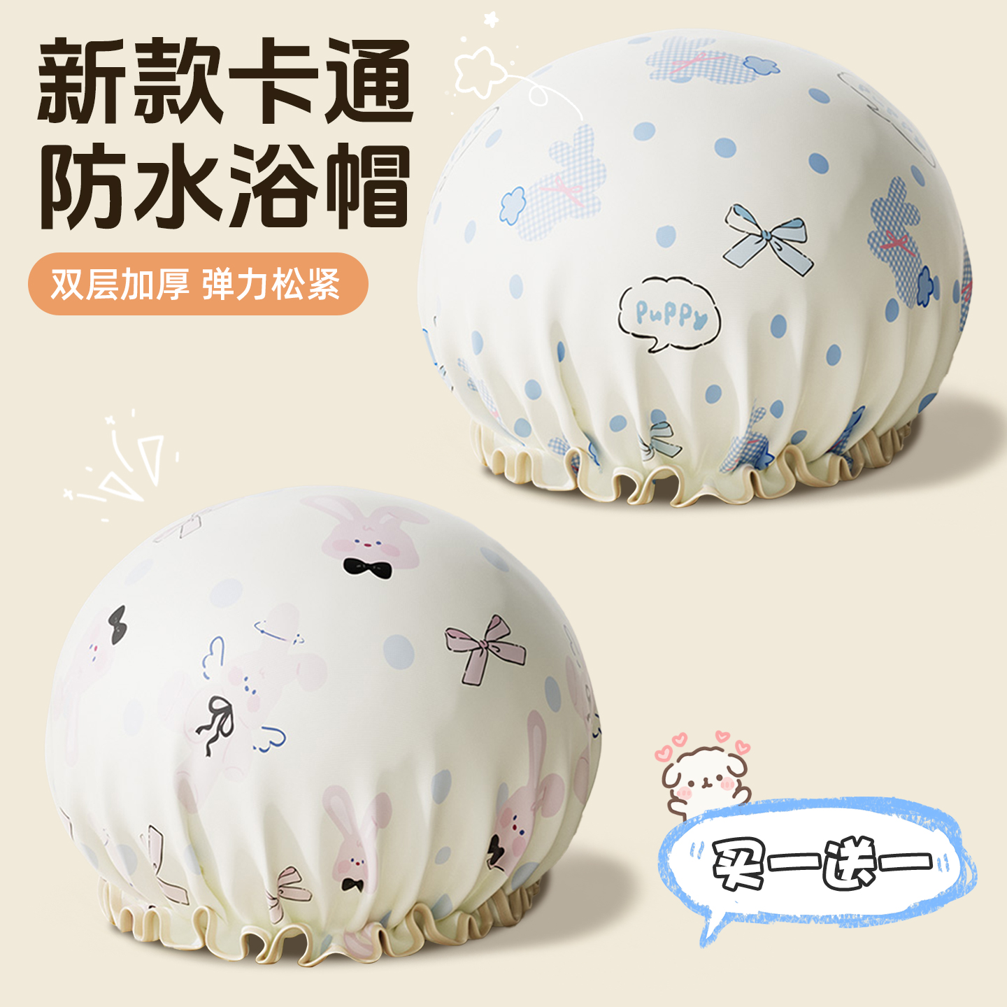 浴帽女防水洗澡帽2025新款 双层加厚卡通家用防油烟成人儿童沐浴帽