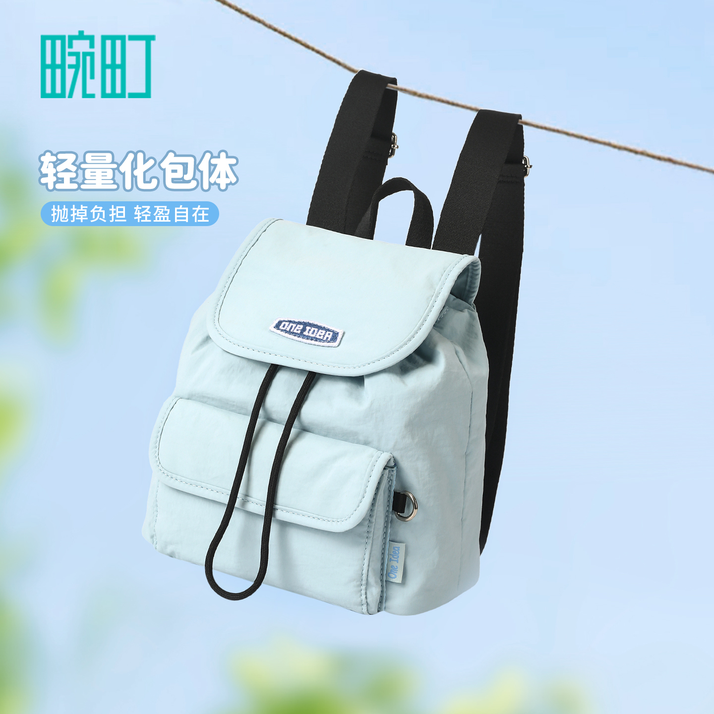 畹町轻休闲系列防泼水双肩包女士轻便小号盖头抽绳背包大学生书包