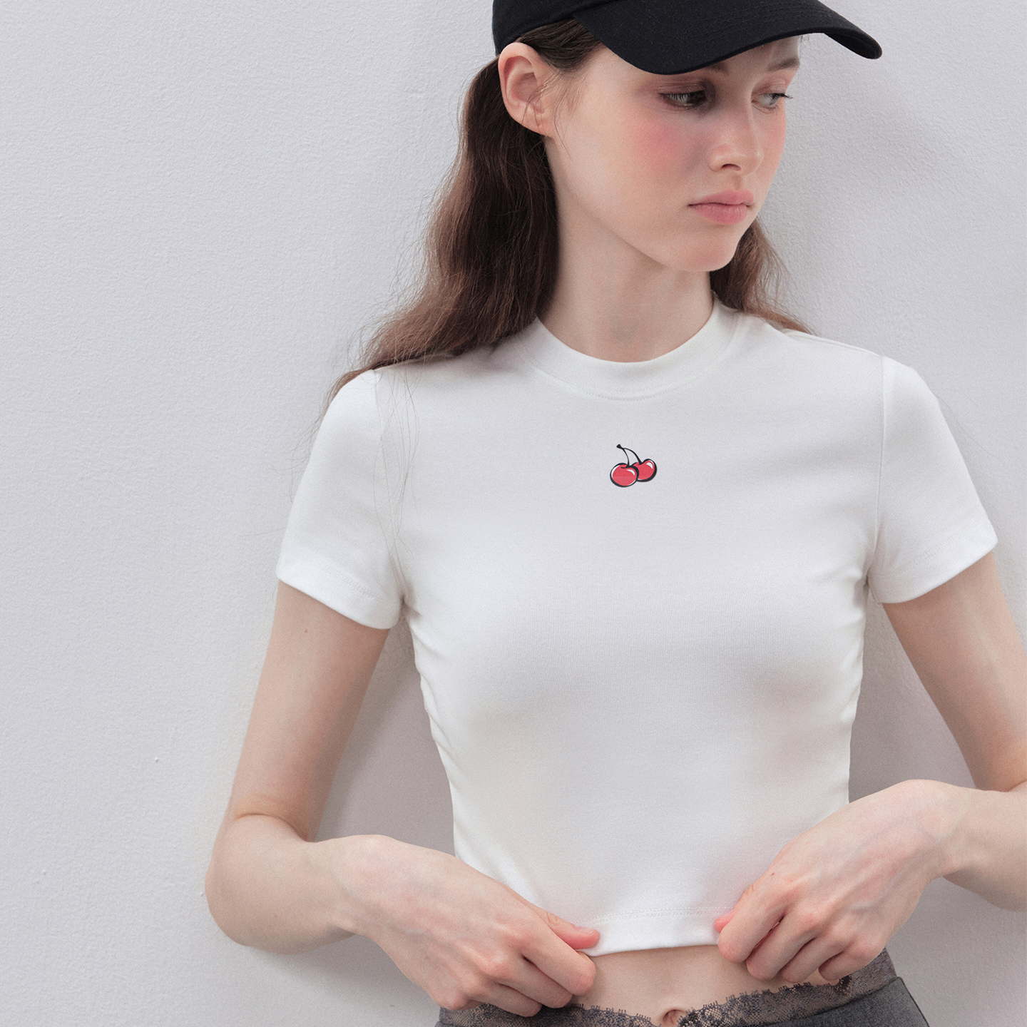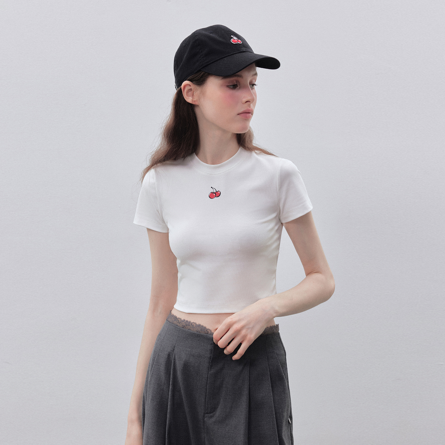 圆领短款 樱桃KIRSH经典 韩版 T恤女25夏新款 上衣 微发泡印花正肩修身