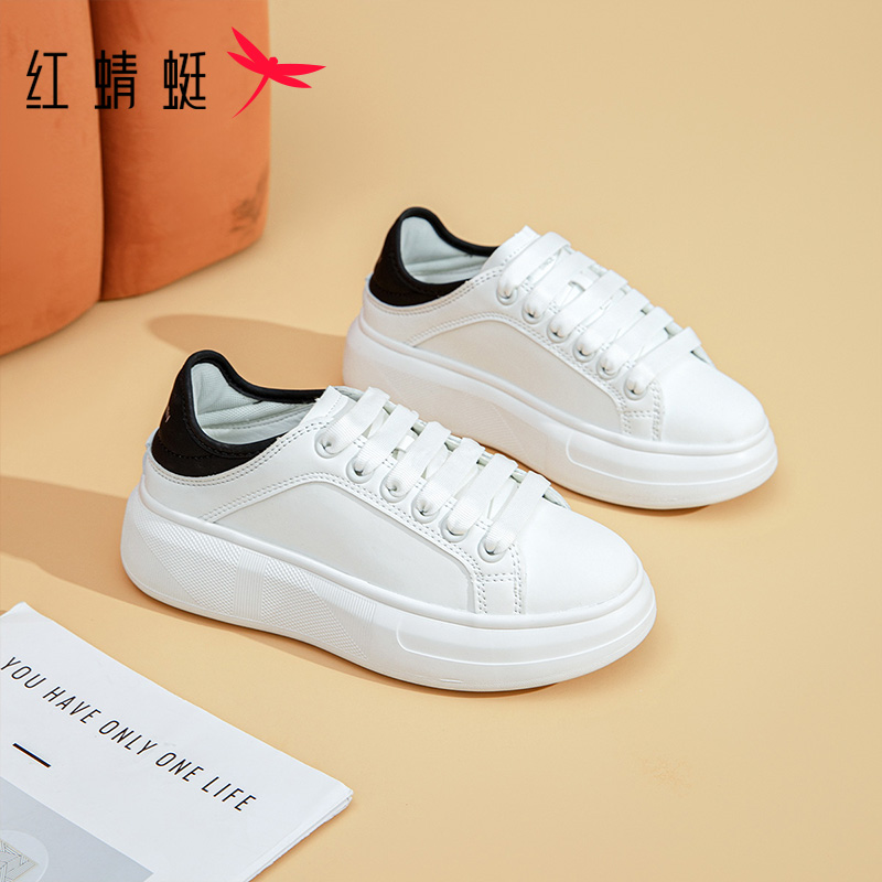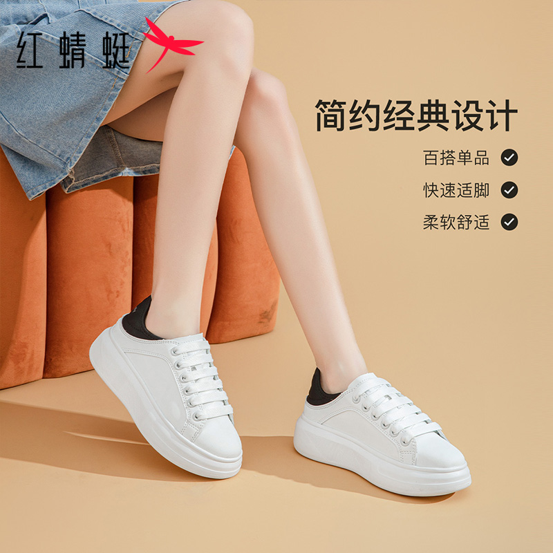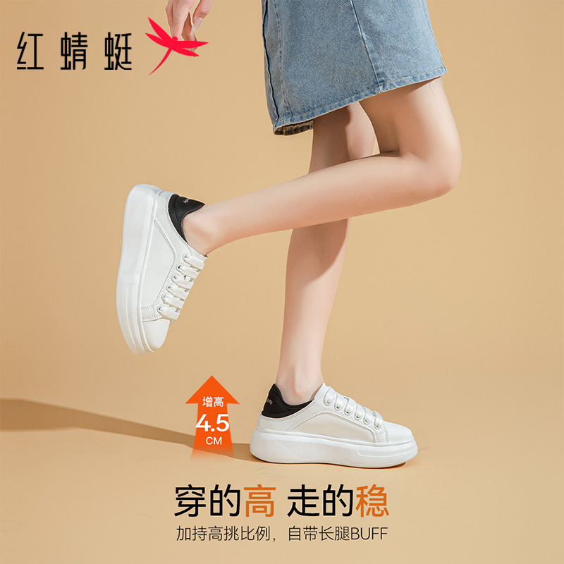 新品 2025年秋季 皮面红色百搭休闲 学生厚底增高运动板鞋 乔丹女款
