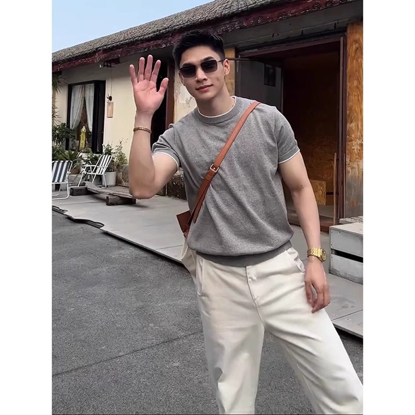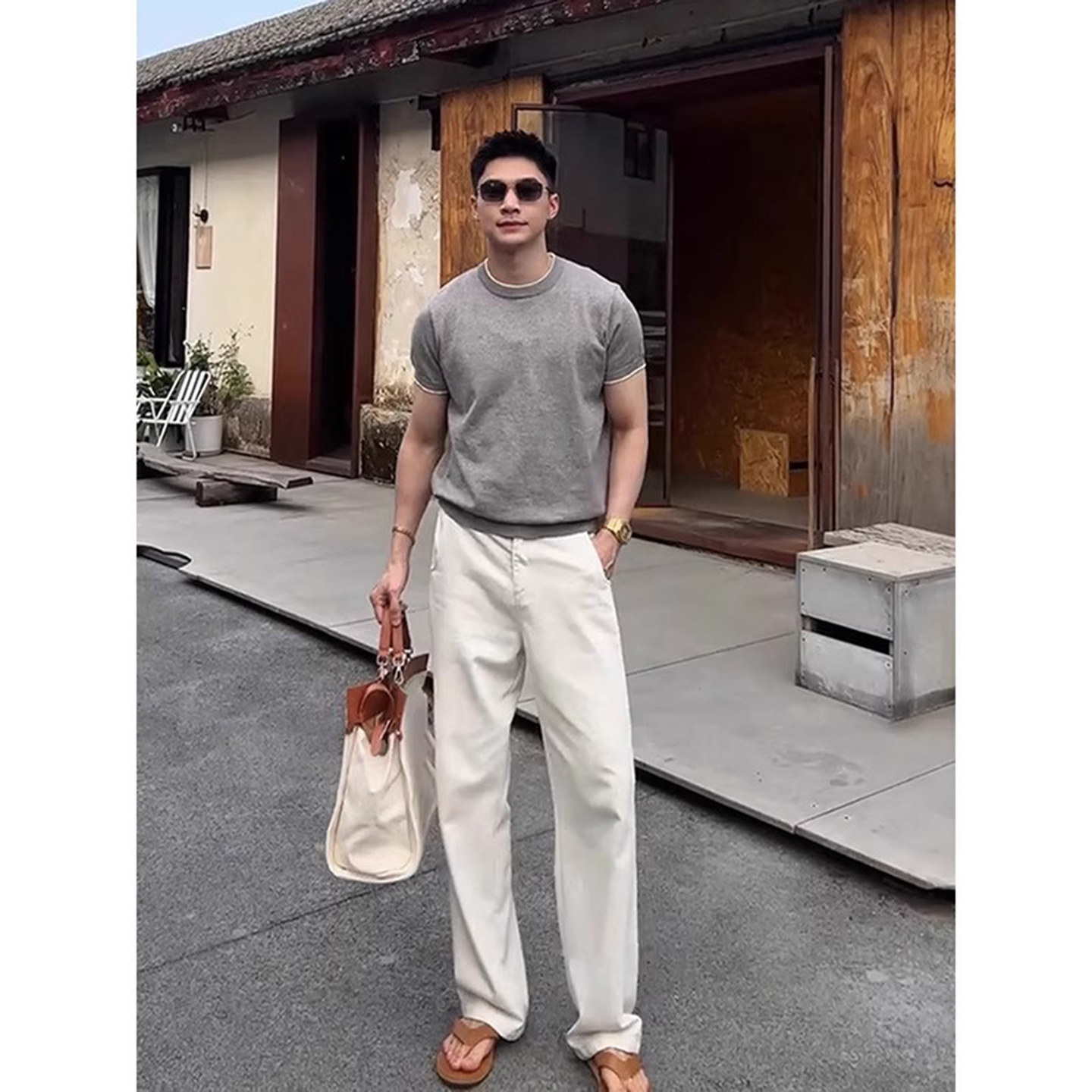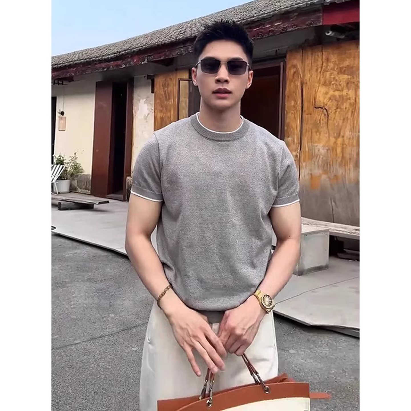 假两件老钱风针织短袖 上衣 t恤男生韩系穿搭一整套痞帅高级感半袖