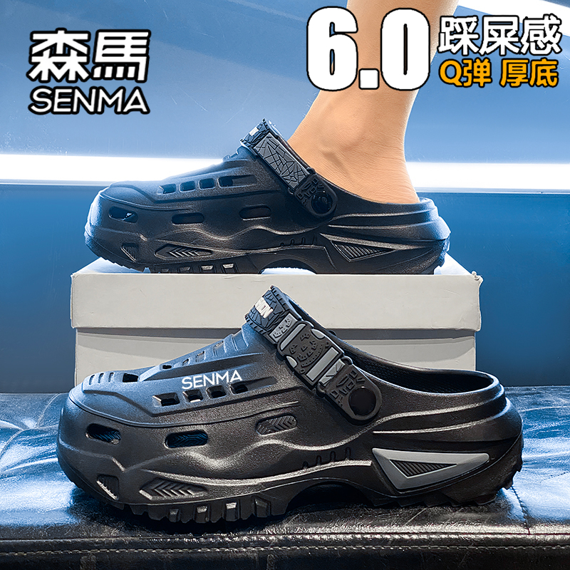 青少年运动沙滩凉鞋 森马洞洞鞋 外穿防滑开车两穿包头拖鞋 夏季 男款
