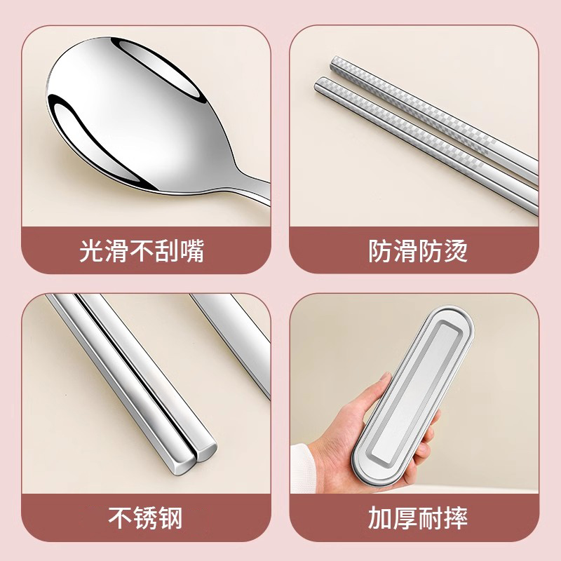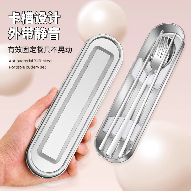 316不锈钢餐具盒空盒儿童小学生上学专用便携一人筷子勺子收纳盒