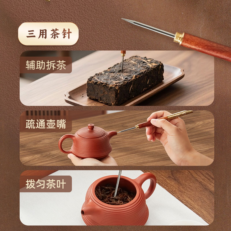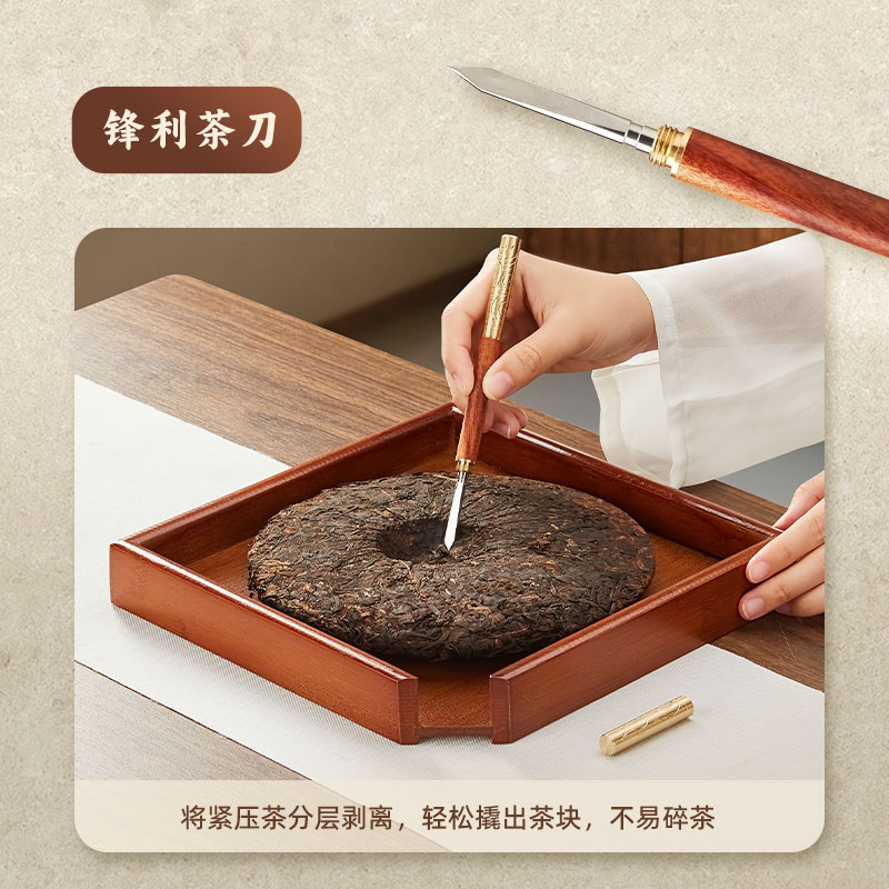 金灶普洱茶茶刀茶锥开茶器茶具配件铜木双用茶针茶饼专用撬刀工具