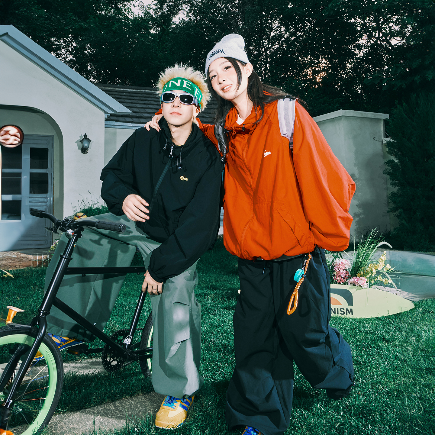 潮流刺绣撞色夹克美式 宽松秋季 复古 森马外套女连帽插肩袖 超值购