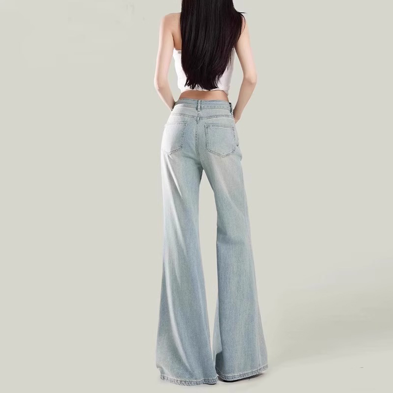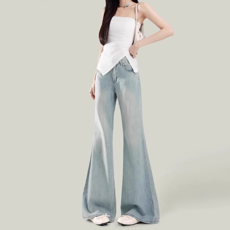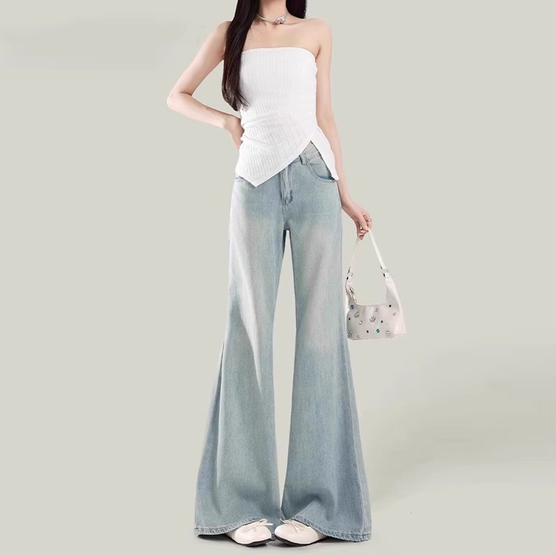 高腰不贴腿宽松阔腿垂感遮胯喇叭裤 新款 子 女夏季 浅蓝色微喇牛仔裤