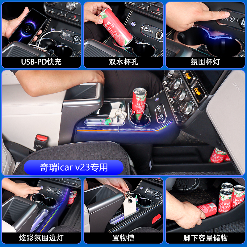适用奇瑞icarv23中间隔断扶手箱v23中控改装 饰配件 件车内储物盒装
