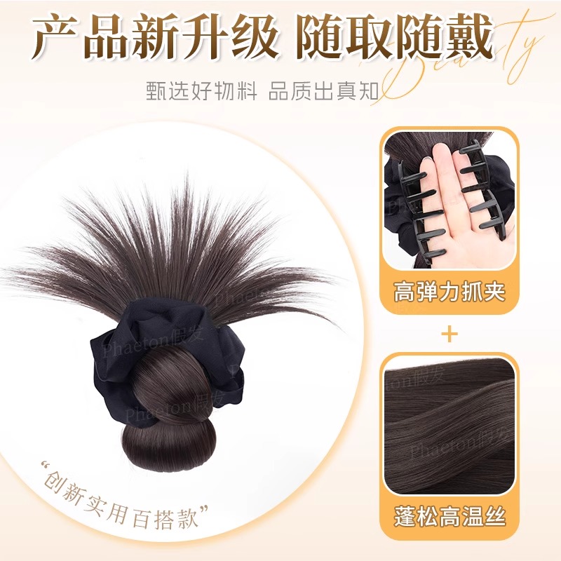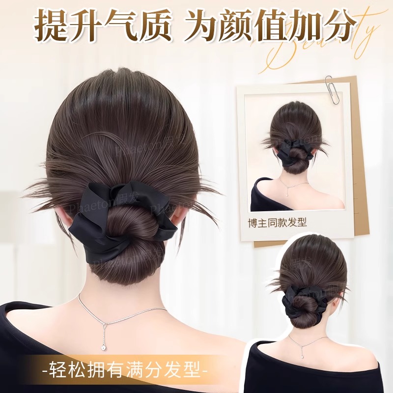 丸子头假发低扎抓夹女盘发花苞头自然蓬松后脑勺发包神器假发发圈