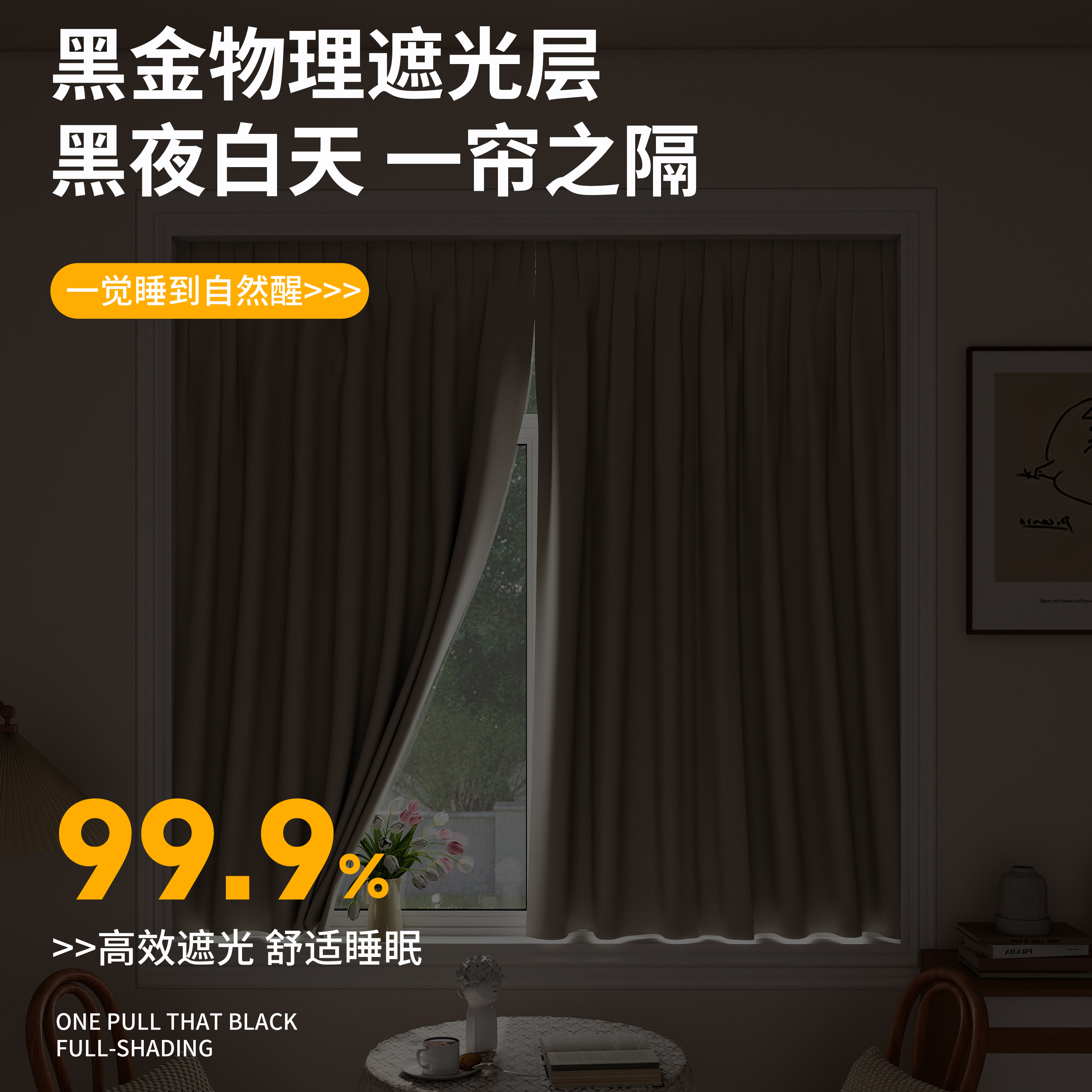 魔术贴窗帘遮光布2025新款 加厚遮阳帘小窗户防晒隔热免打孔窗帘布