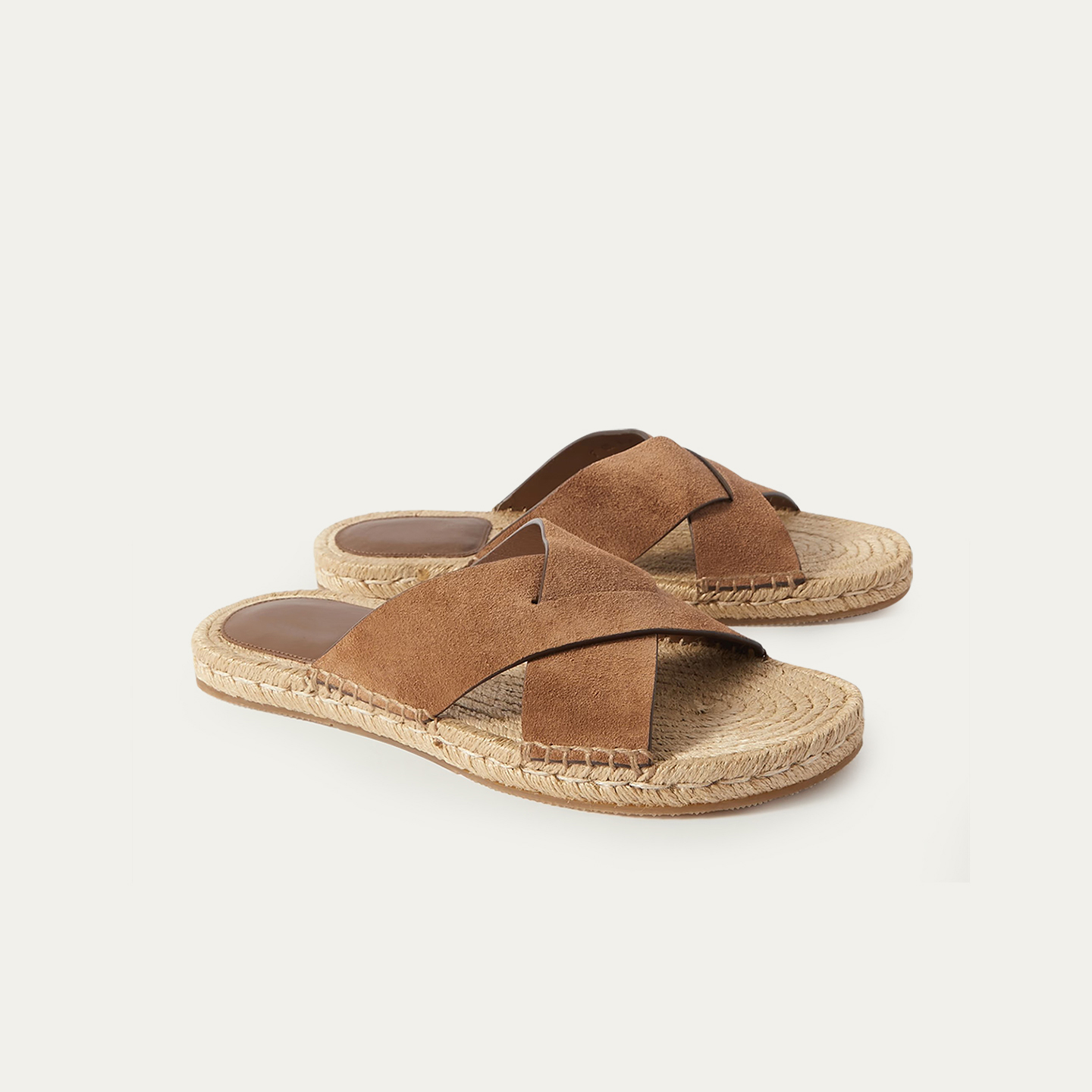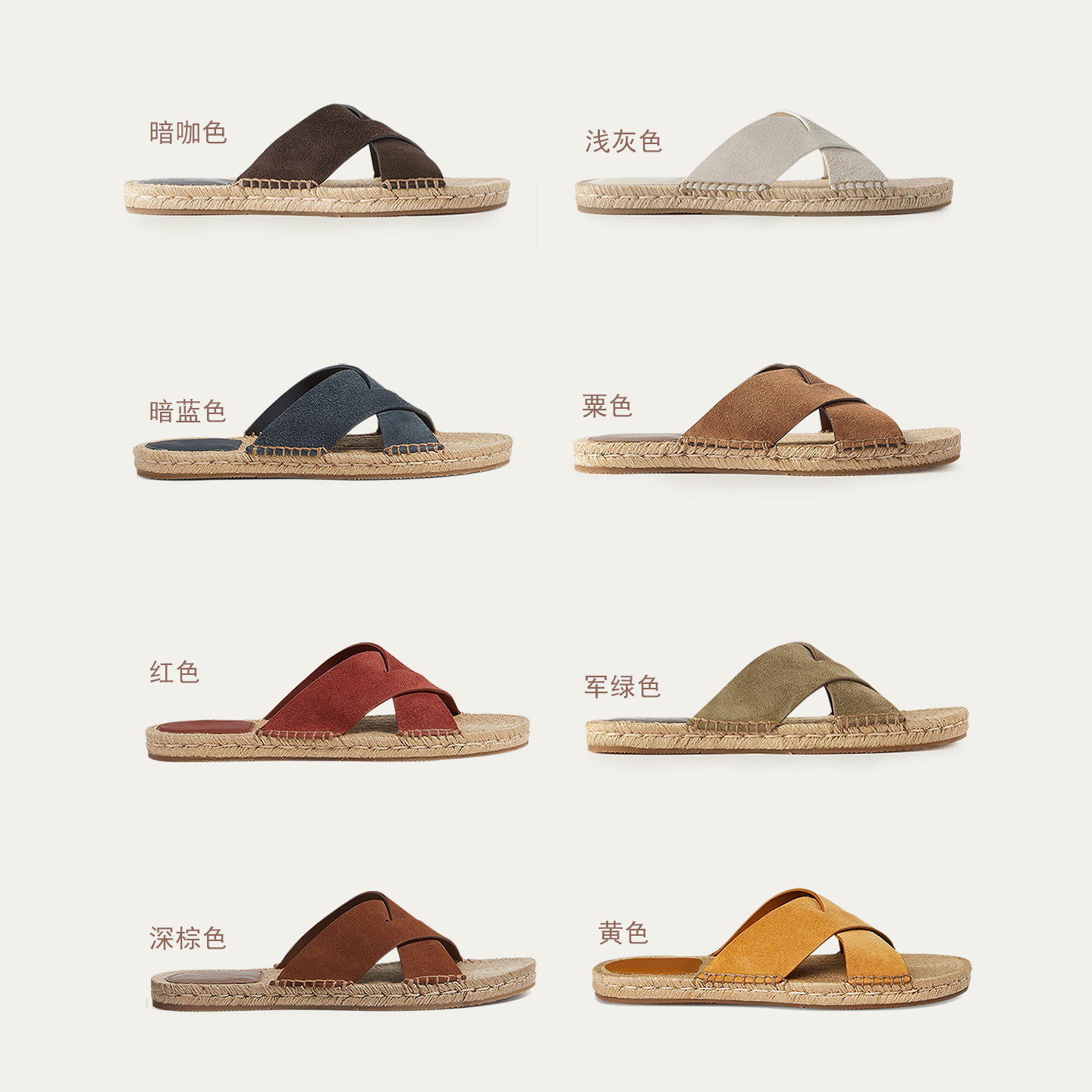潮青年麻绳编织牛皮沙滩鞋 休闲拖鞋 男夏日室外透气交叉一字凉拖鞋