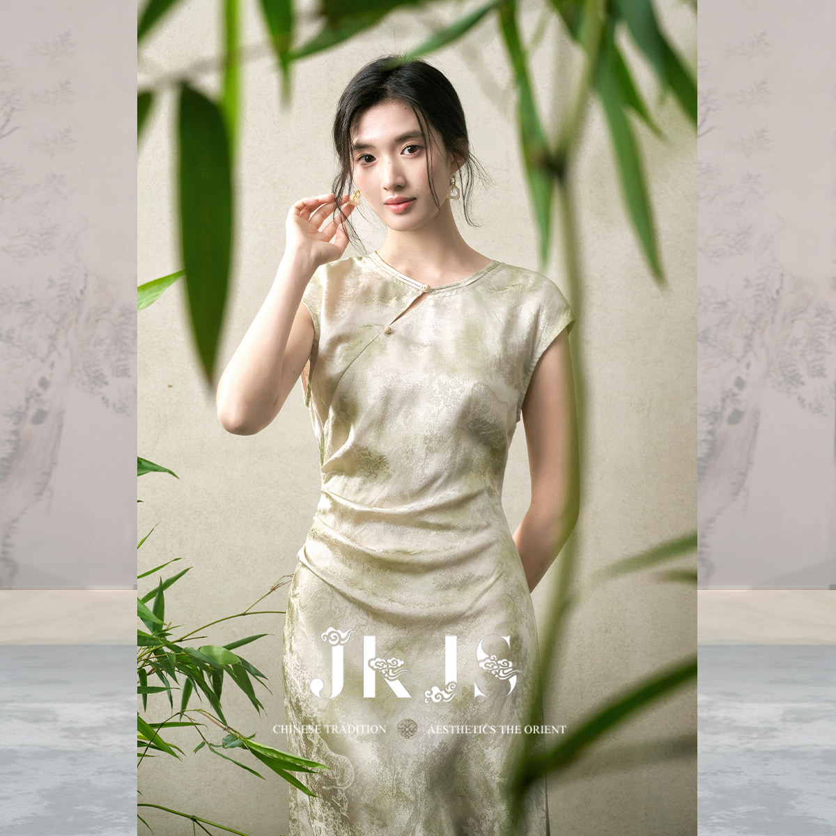 绿色鱼尾包臀碎花连衣裙高级感修身 泡泡袖 显瘦长裙子 新款 2025夏季