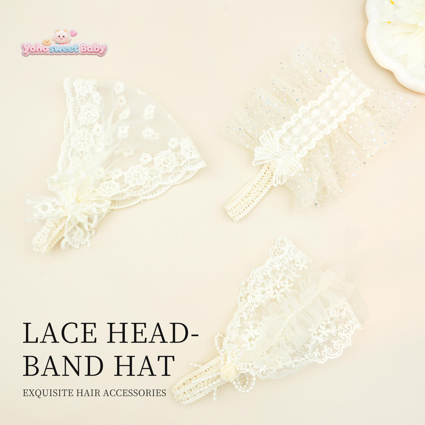 婴儿发带夏季 女宝宝护囟门帽子遮脑门帽蕾丝花边包头ins头饰 薄款