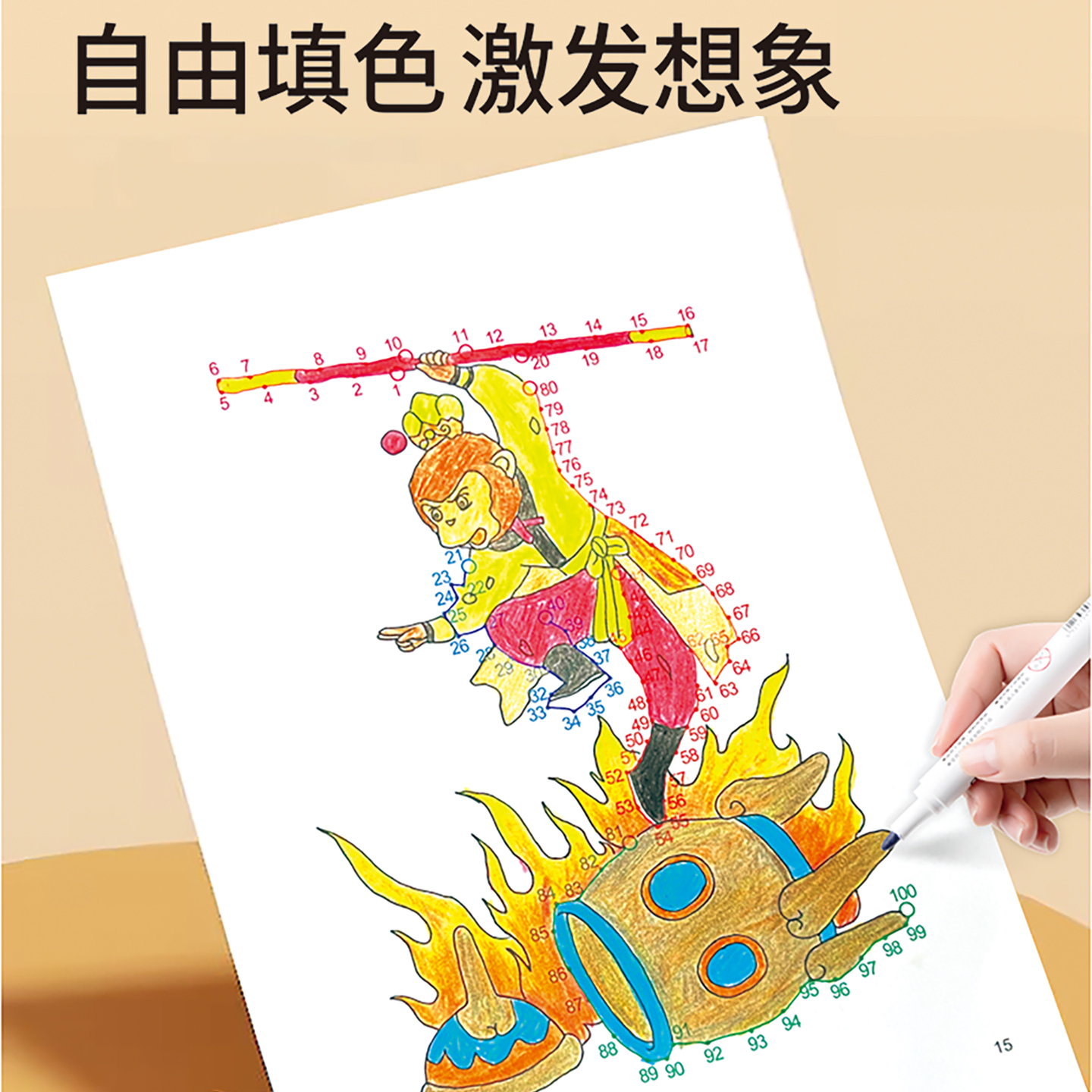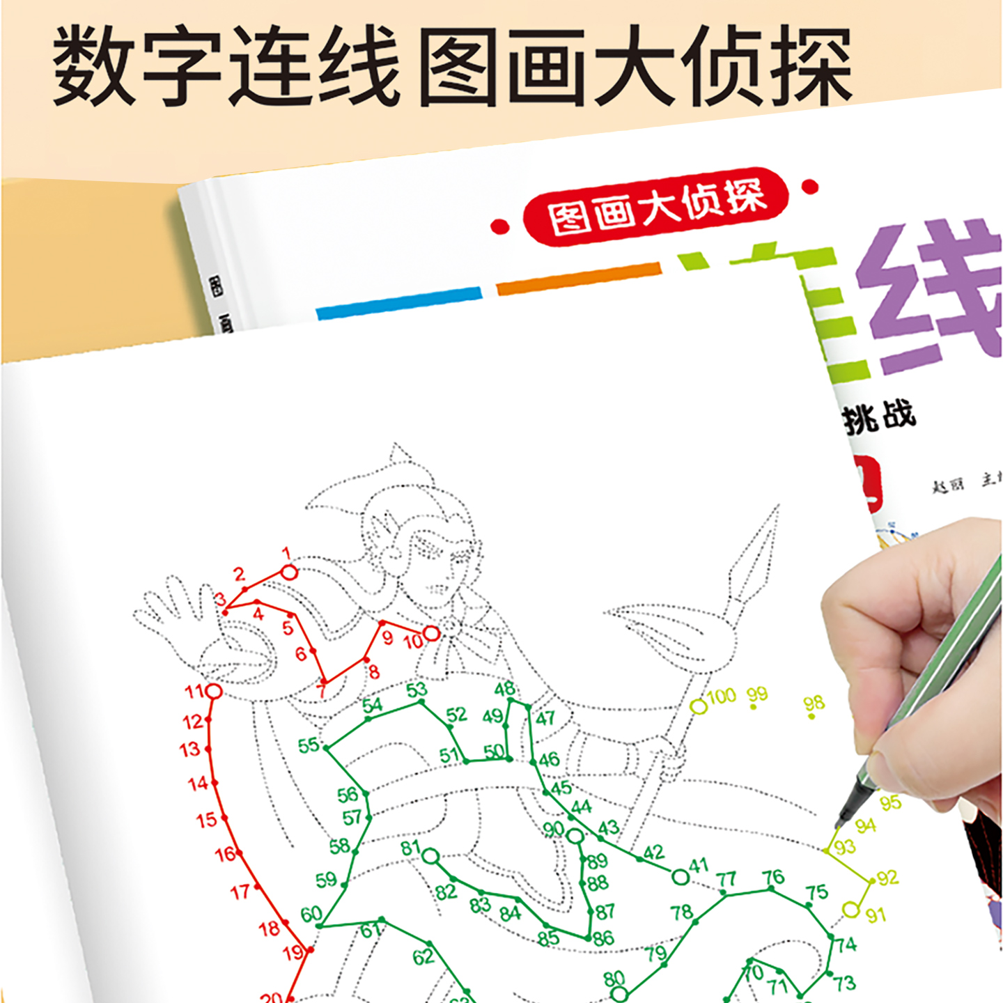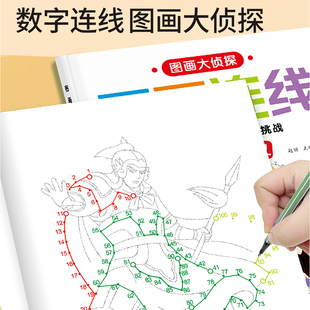 儿童专注力大挑战数字连线画魔法线条幼儿宝宝控笔训练入门幼儿园2 6岁涂色书画画本全脑开发动脑绘本绘画图画美术侦探水浒传
