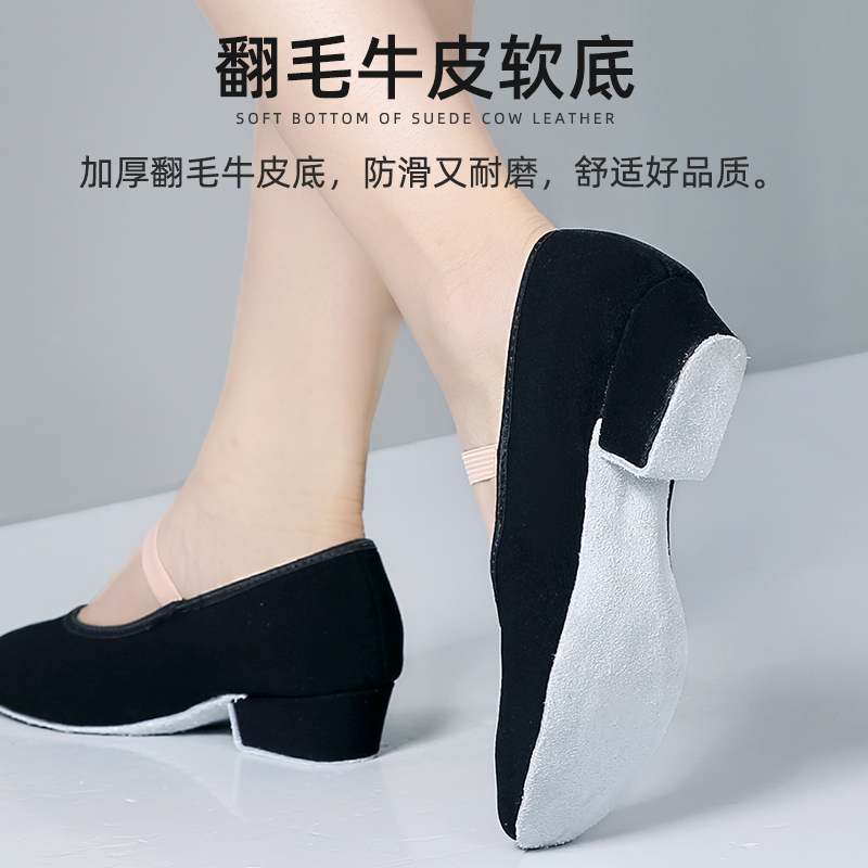 女软底黑色带跟儿童民族舞练功鞋 性格舞鞋 古典舞芭蕾考级黑跟鞋