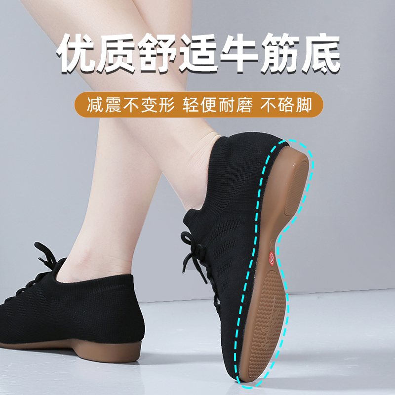 女成人软底牛筋底中老年平底跳舞鞋 低跟广场舞鞋 不累脚飞织舞蹈鞋