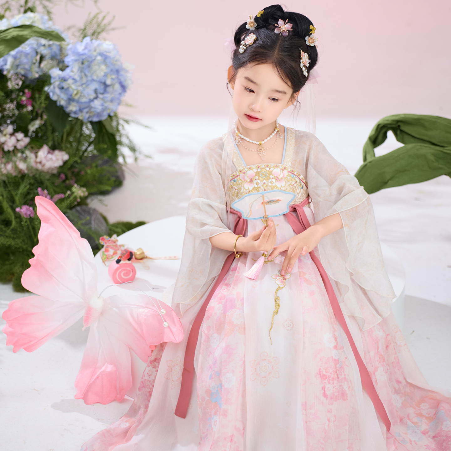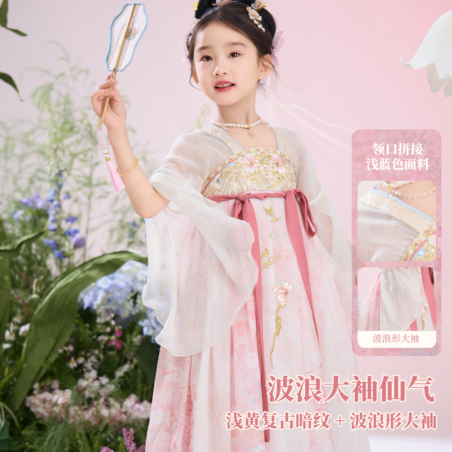 新款 十三余童装 汉服女2025夏季 儿童古装 国风刺绣连衣裙 聆花入梦