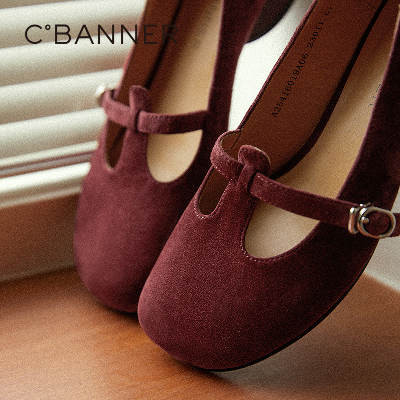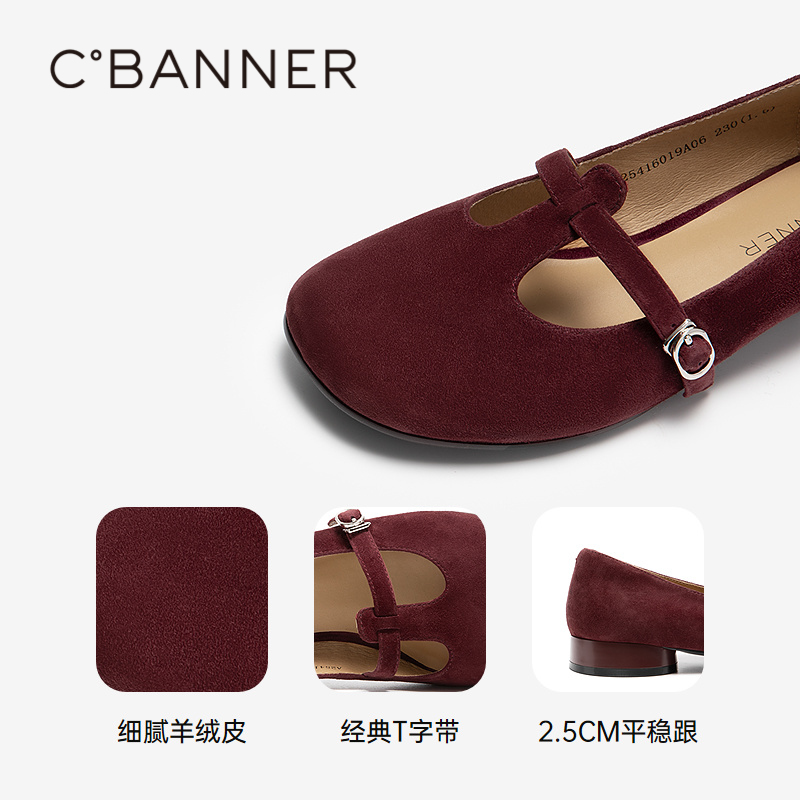红色玛丽珍鞋 法式 百思图莫奈花园25秋新款 女单鞋 乔欣明星同款