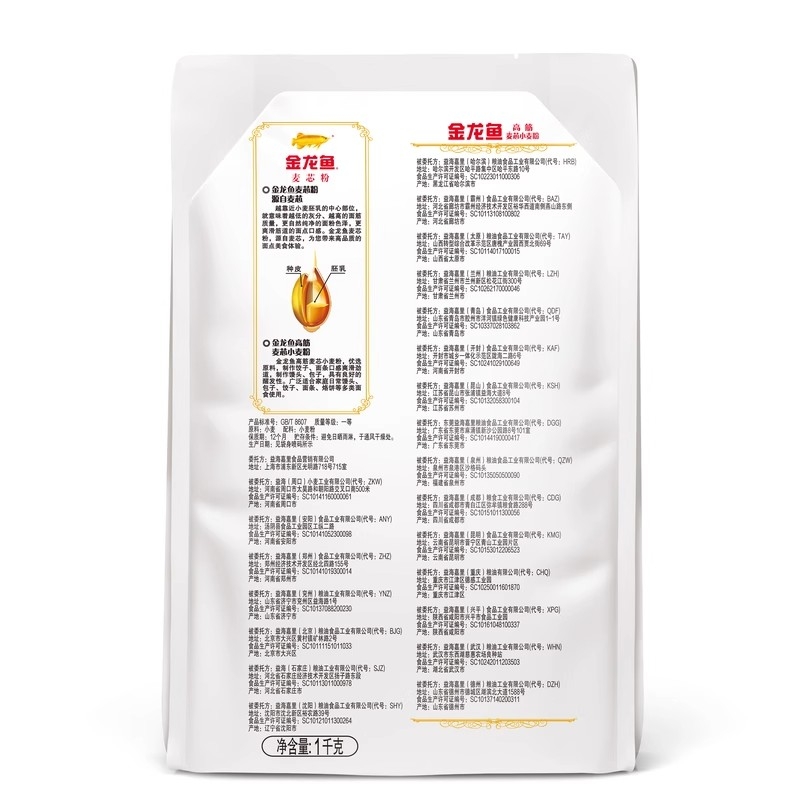 金龙鱼高筋麦芯小麦粉1kg小包装 家用商用通用面粉包子饺子面条2斤