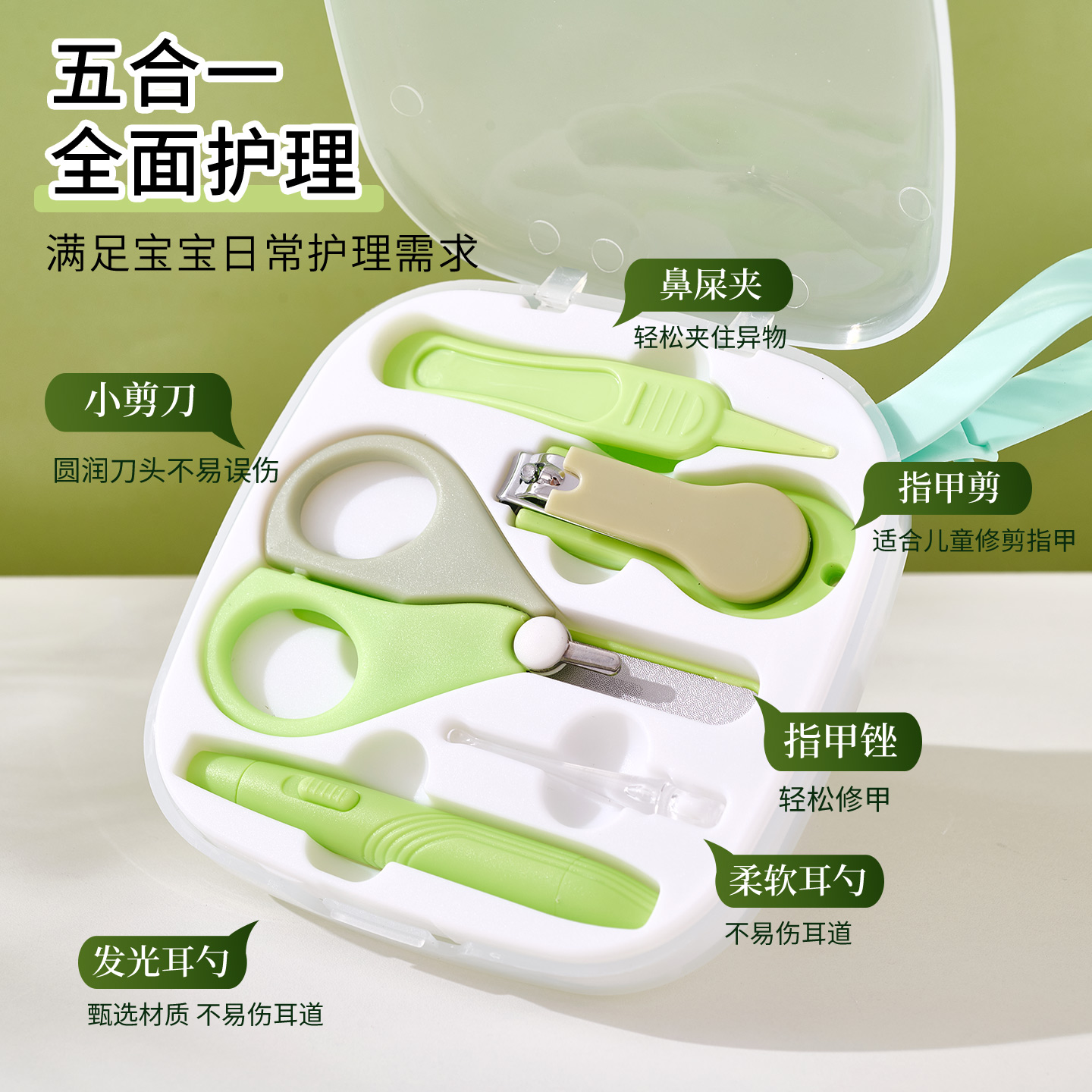 宝宝指甲剪套装 婴幼儿专用指甲钳可视发光掏耳勺指甲锉指甲刀套装