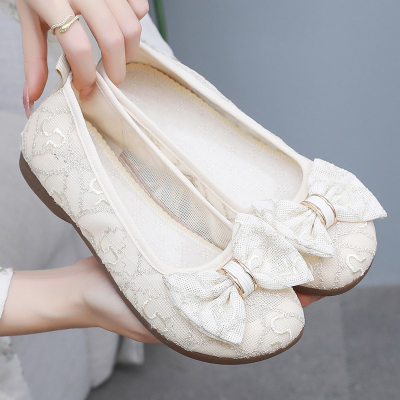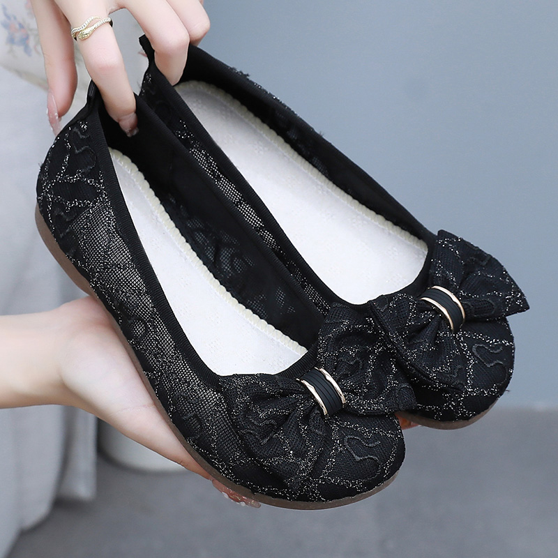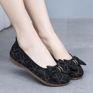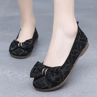 女鞋 平底软底休闲豆豆鞋 新款 百搭蝴蝶结网鞋 一脚蹬 时尚 老北京布鞋