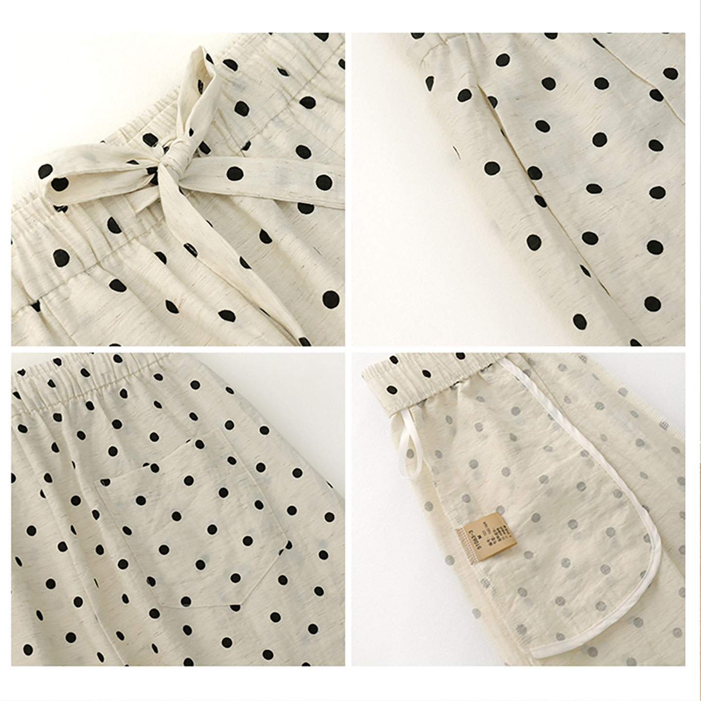 宽松垂坠感慵懒休闲冰丝弯刀裤 波点亚麻阔腿裤 子女春秋夏2025新款