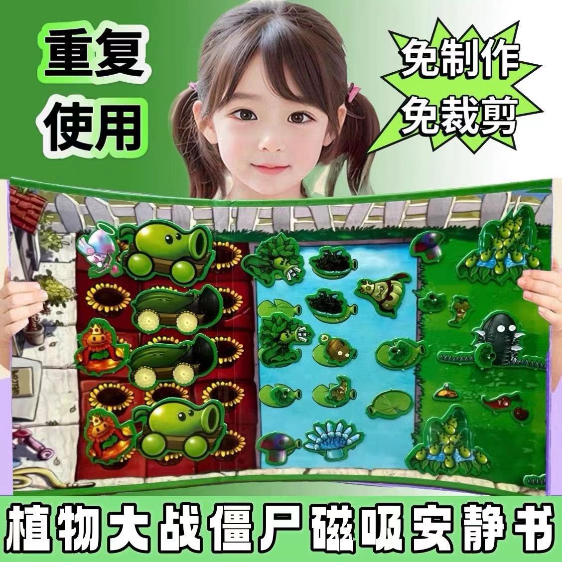 植物大战僵尸周边磁力安静书大尺寸男孩角色扮演手工益智磁性玩具