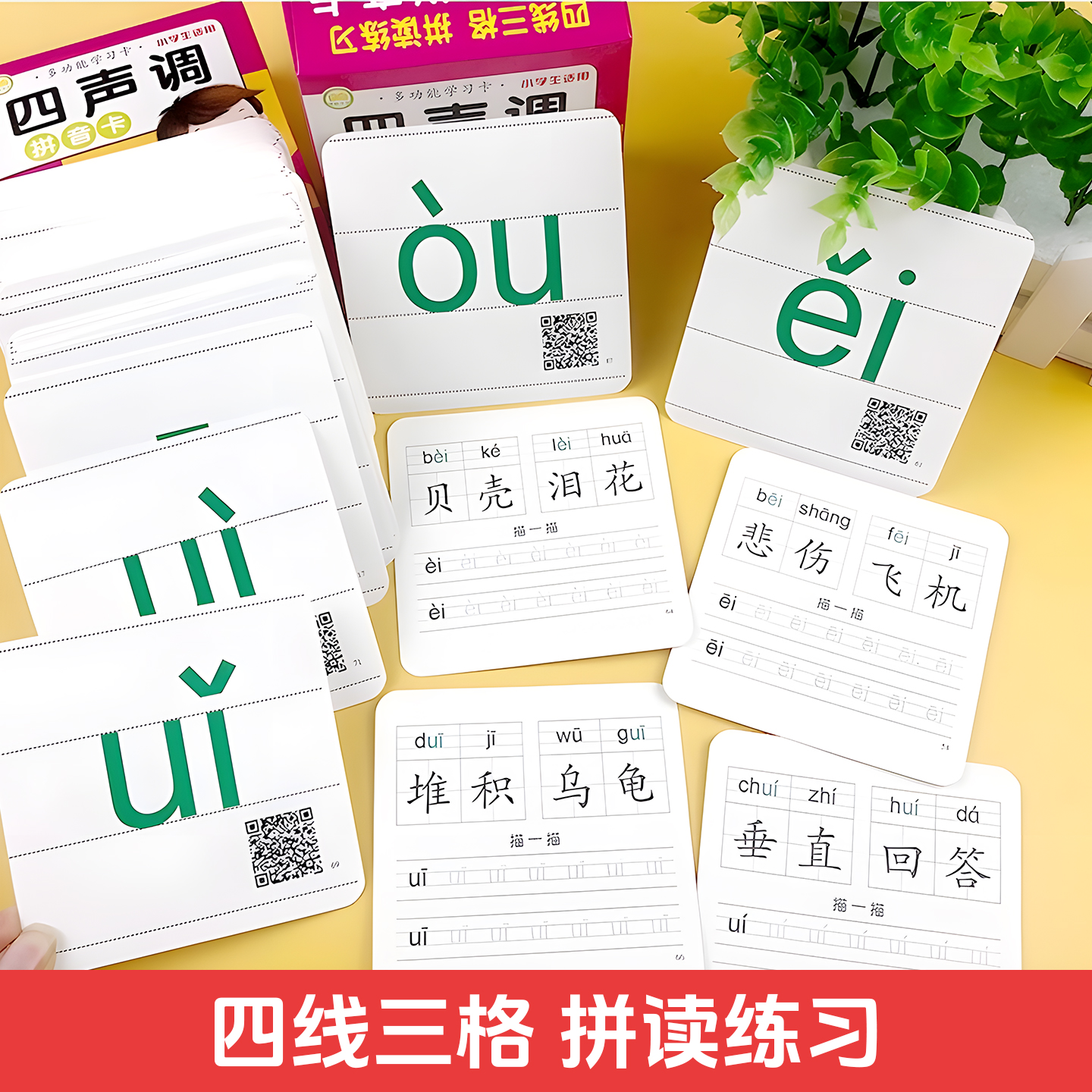 幼小衔接四声调拼音卡3到6岁四声调一年级声母韵母整体认读卡幼儿园大班教材无图启蒙认知练习卡小学幼儿园儿童学习卡拼音训练神器