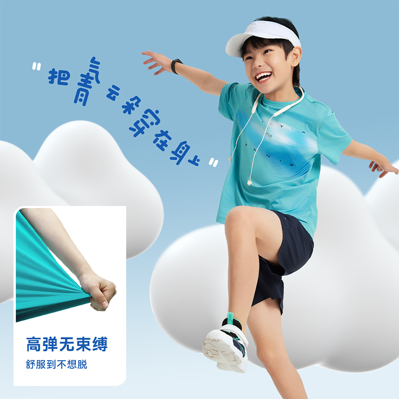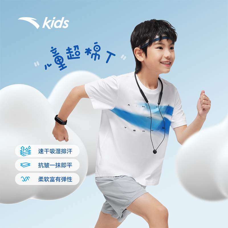 短袖 新款 T恤上衣 男童T恤速干抗皱跑步短t2025夏季 超棉T安踏儿童装