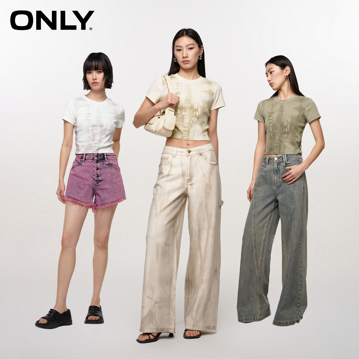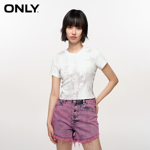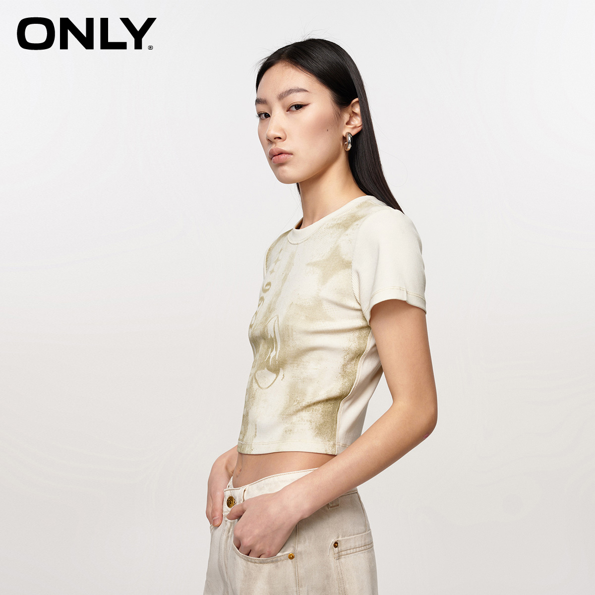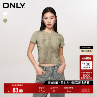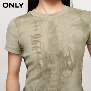 T恤女 正肩短袖 124101080 休闲复古印花螺纹修身 ONLY夏季