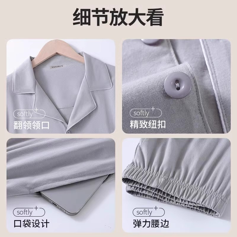 睡衣男款 长裤 纯棉家居服套装 青少年男生春夏100%全棉长袖 春季 男士