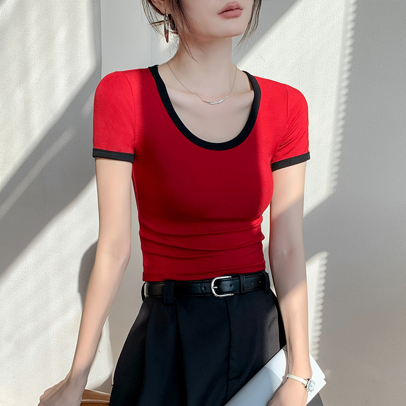 t恤女夏季 纯白色棉体恤打底衫 2025新款 修身 上衣短款 回力正肩短袖