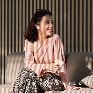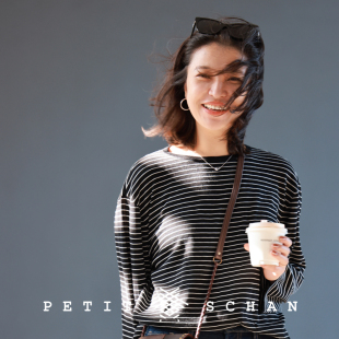 条纹薄T恤女针织空调物理防晒衫 小闪 棉桑蚕丝亚麻百搭柔软长袖