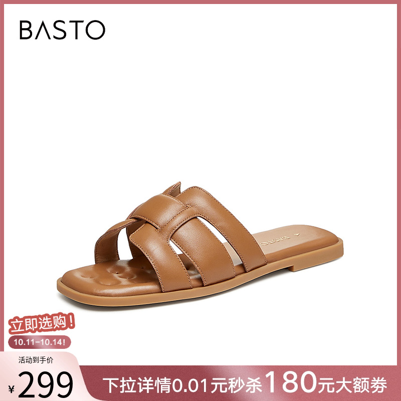 女羊皮凉鞋 平底外穿拖鞋 百思图2025夏商场新款 TY409BT4 漫步鞋