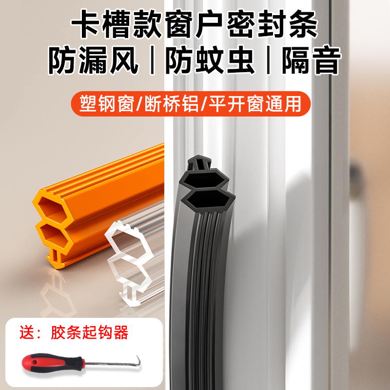 断桥铝窗户卡槽密封条防漏风缝隙塑钢平开铝合金门窗隔音防风胶条