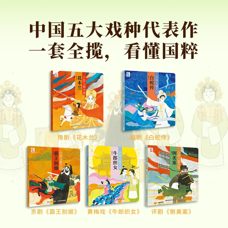 中国戏曲故事豫越 越剧花木兰白蛇传霸王别姬牛郎织女铡美案孩子 京剧 评剧 戏曲绘本启蒙书 黄梅戏 狐狸家绘本小孩儿看大戏全5册
