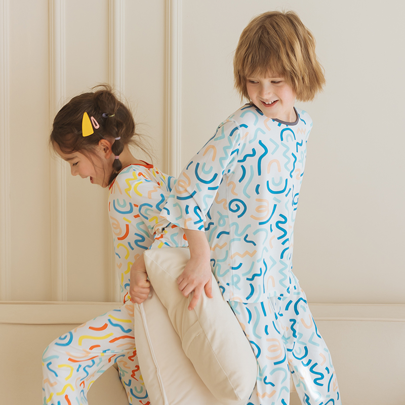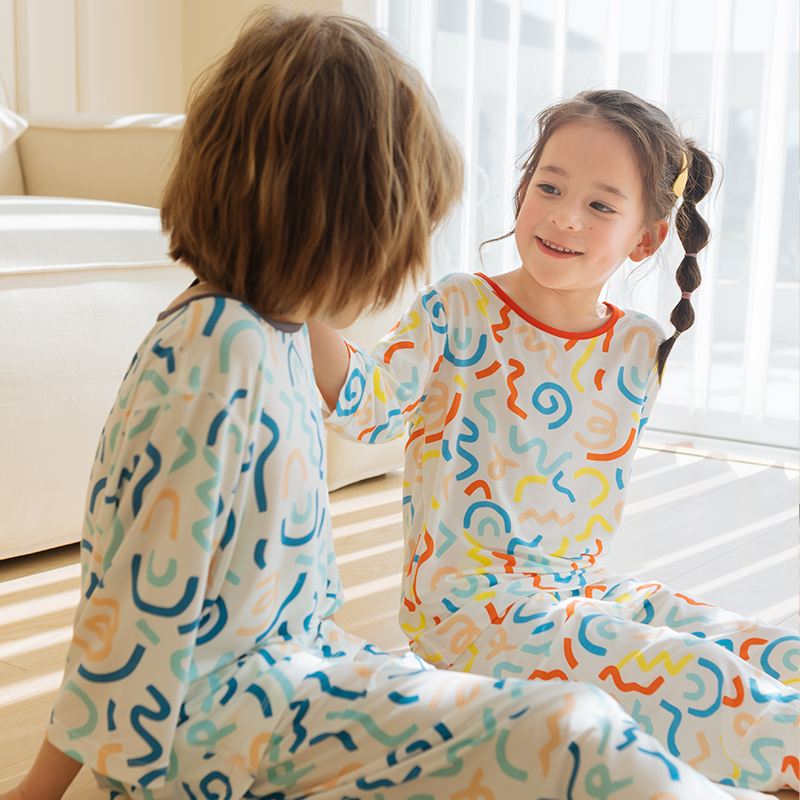 天丝莫代尔女童空调服2025新款 儿童睡衣男孩女孩a类男童夏家居服