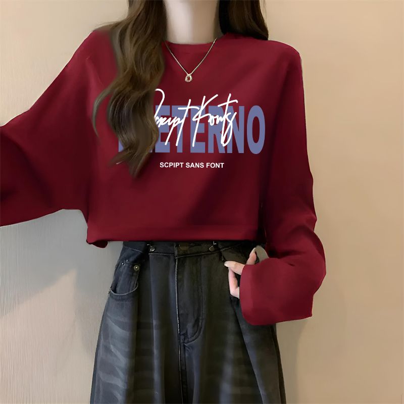 100%纯棉长袖 宽松遮肉显瘦套头外穿拼接薄卫衣E T恤上衣女秋冬韩版
