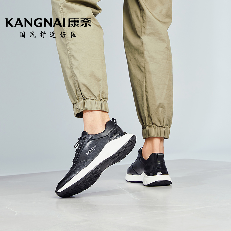 2025秋冬新款 男鞋 商务鞋 增高皮鞋 子 软底休闲系带圆头正装 奥康男鞋