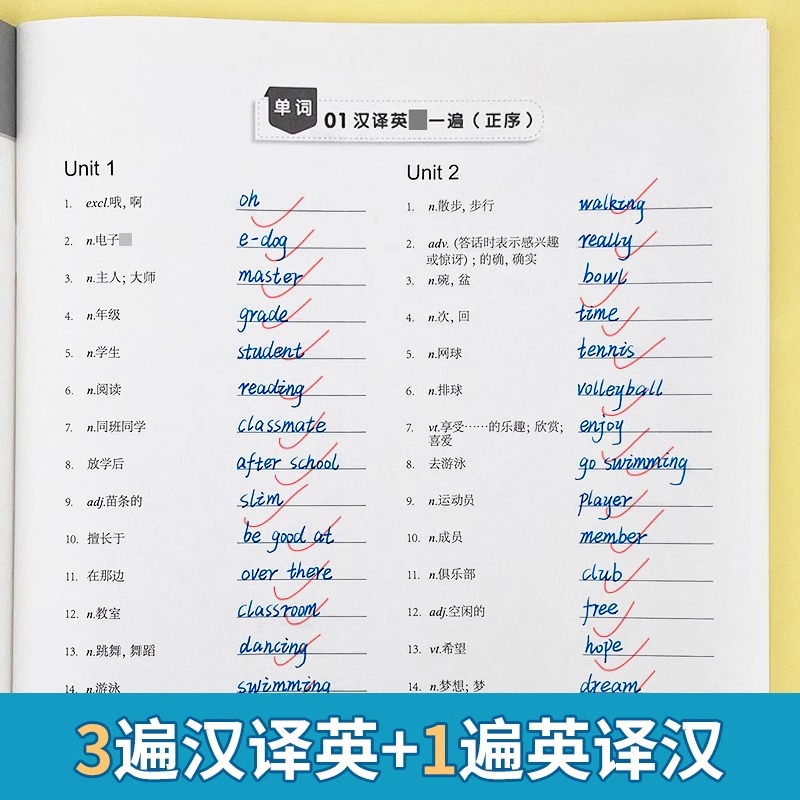 七八九年级上册下册短语句子默写本听写作业本练习英汉互译同步课本专项训练 2025易蓓初中默写100英语词汇单词江苏版 译林版