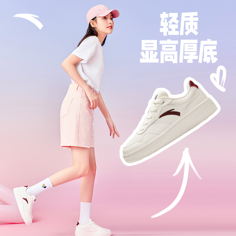 学生青少年舒适耐磨运动鞋 安踏易清洁小白鞋 厚底低帮板鞋 秋季 女鞋