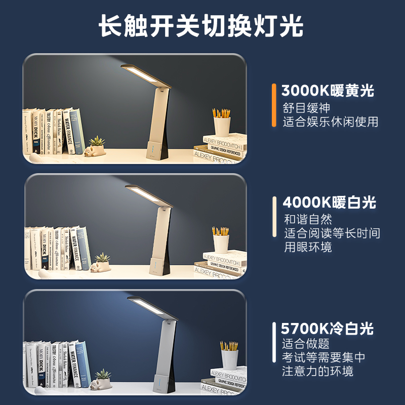 补贴15%美 充电折叠台灯大容量超长续航学生书桌宿舍卧室灯学习