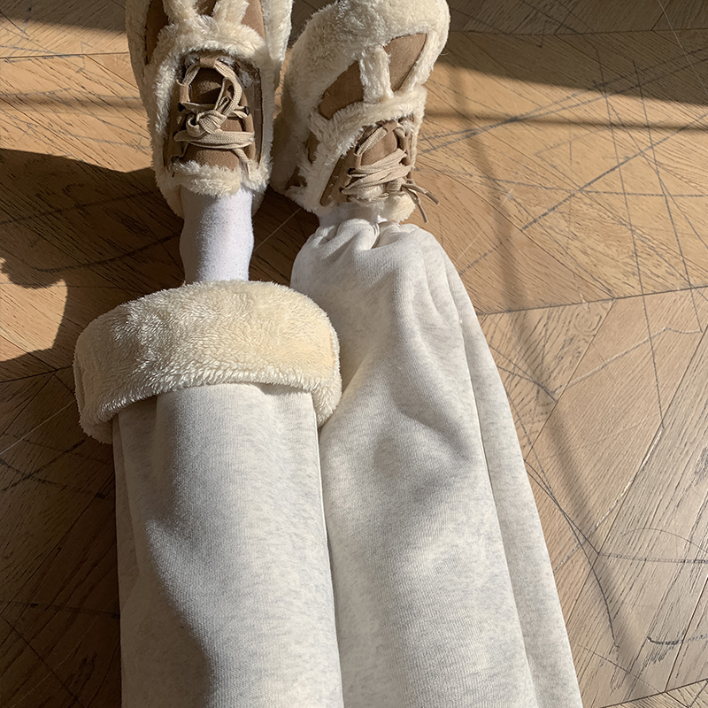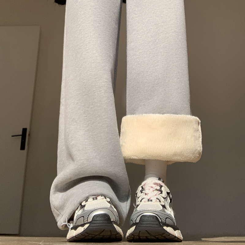 子 加绒裤 灰色运动裤 女秋冬宽松束脚羊羔绒阔腿休闲春秋小个子卫裤