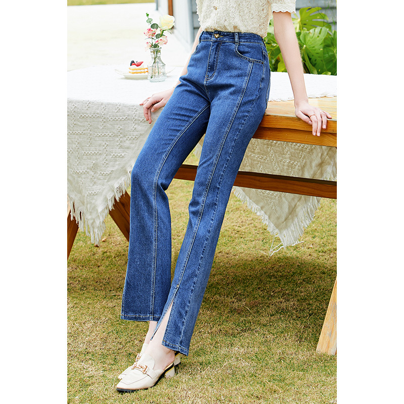 子女2025年新款 复古马蹄牛仔裤 秋季 显瘦紧身喇叭裤 高腰修身 微喇裤