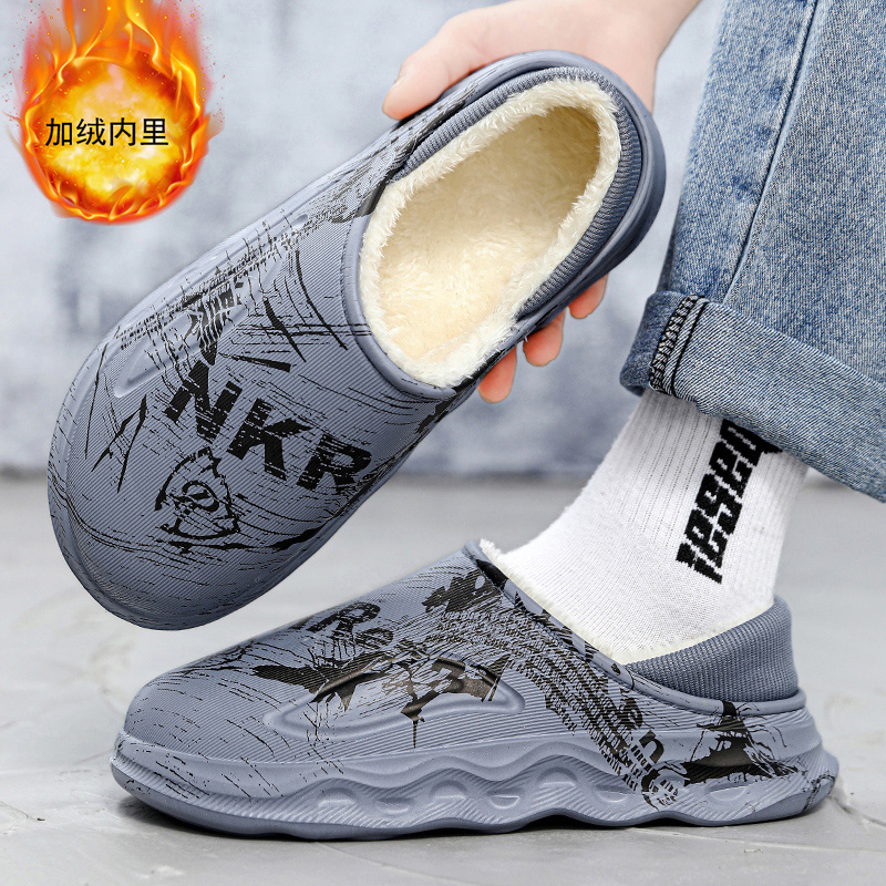 外穿2025新款 棉拖鞋 棉鞋 加绒防寒保暖加厚东北包跟家居大码 男冬季