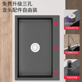 松鲸 手工大单槽家用洗菜盆一体洗碗池 黑色纳米不锈钢厨房水槽