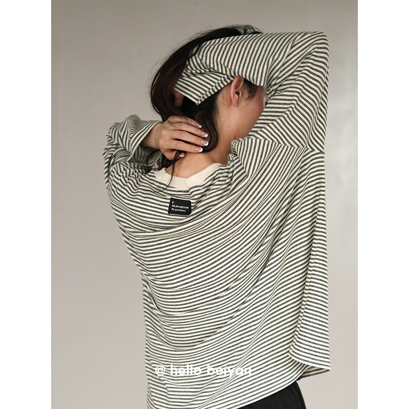 套装 柔软棉家居服简约条纹可外穿男大码 情侣睡衣女长袖 贝妍春秋季