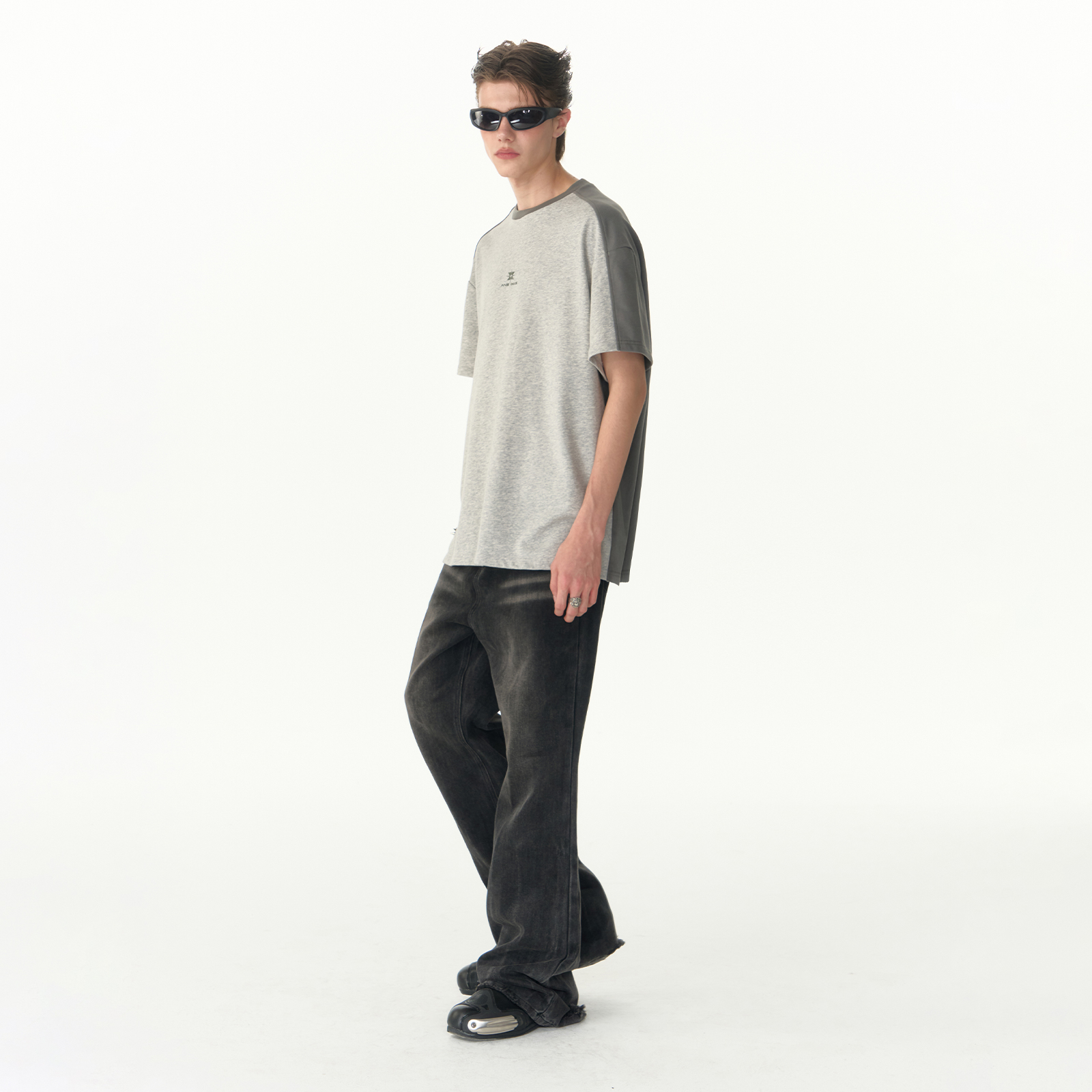复古运动休闲短袖 针织宽松美式 上衣 T恤插肩袖 IMXS拼接撞色半袖