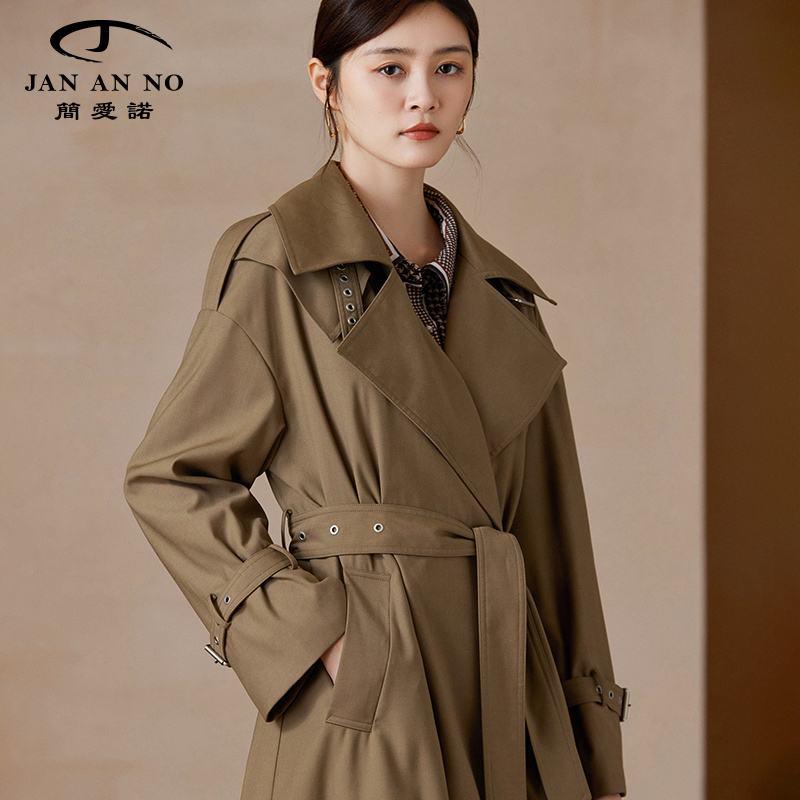 KBNE巴恩风卡其色风衣女小个子2025秋冬新款 气质英伦宽松中长外套