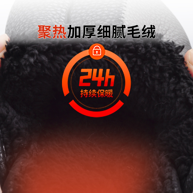 2025新款 冬季 室内家居防滑厚底皮面保暖 高端棉拖鞋 大嘴猴防水男士