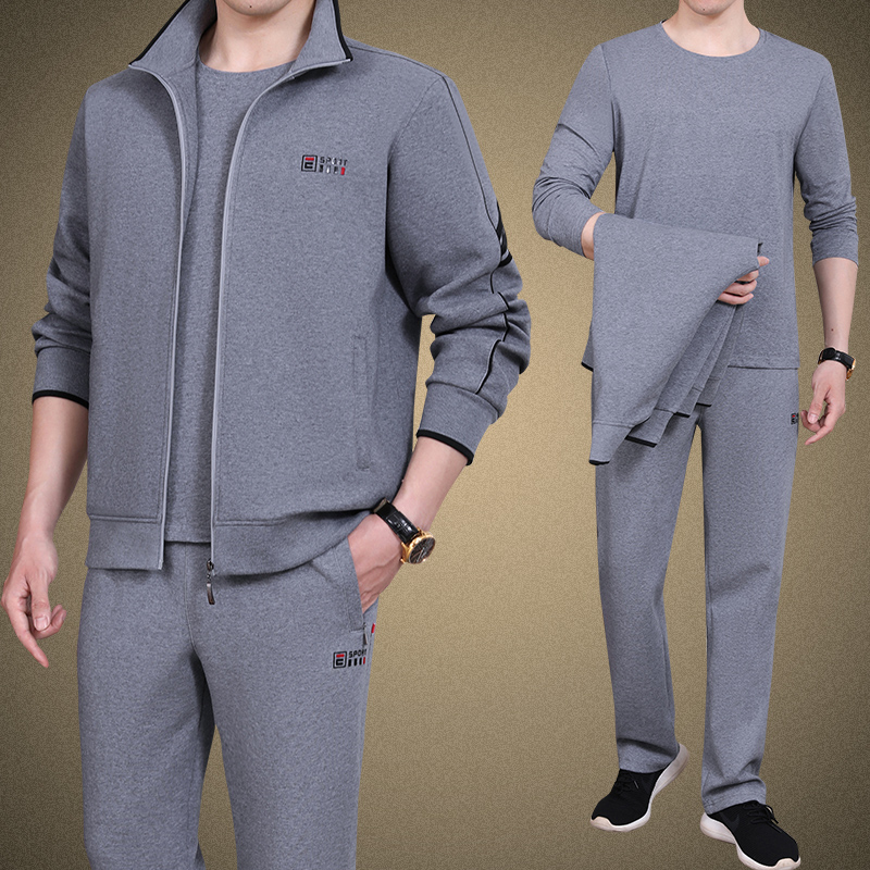 三件套休闲宽松中老年男装 春秋季 衣服 气质男士 爸爸运动服套装